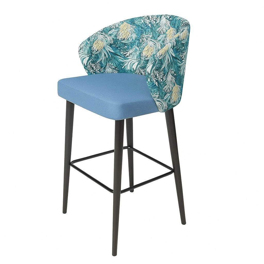 De barkruk Sandra PLC | BS kenmerkt zich door vloeiende, ronde lijnen gepaard met speelse patronen in de stoffering. Een van de belangrijkste elementen aan de barkruk is de halfronde rugleuning.
